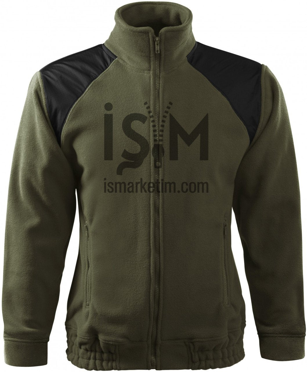 Garnitür Çift Renk Cep Fermuarlý Polar Ceket - Haki Yeþil